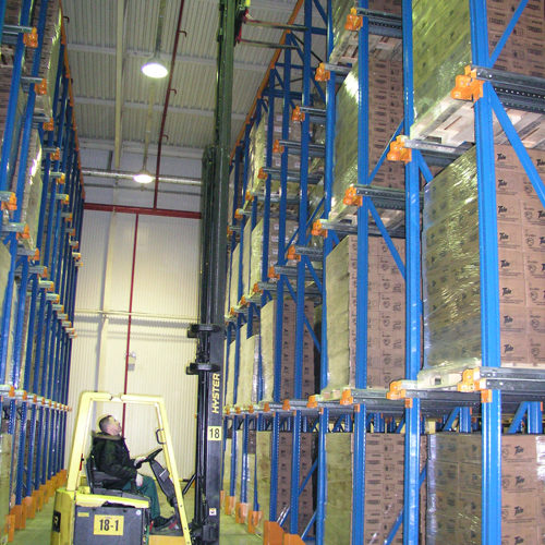 - Возможность использования проходов для компактного складирования значительного количества однородных продуктов